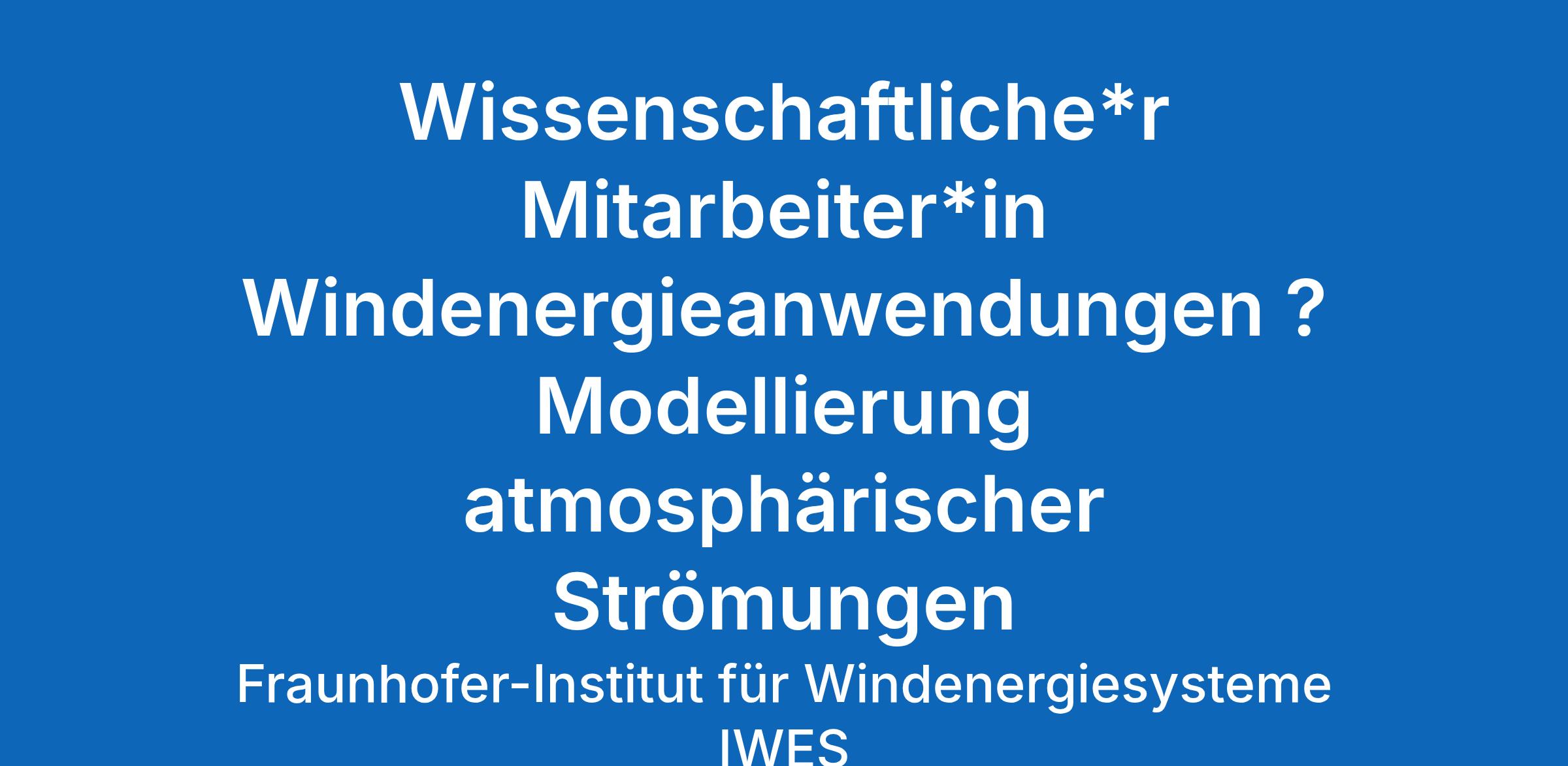 Am Fraunhofer-Institut für Windenergiesysteme IWES wird die Energiewende jeden Tag Realität. Unsere Fokusthemen sind: Offshore Windenergie, Wasserstoff, Prüfinfrastruktur und Digitalisierung. Mehr als 400 Mitarbeitende – davon rund 100 Studierende – aus über 50 Ländern arbeiten an neun Standorten in wissenschaftlichen und nicht wissenschaftlichen Teams an der Entwicklung innovativer Methoden, um den Ausbau der Windenergie- und Wasserstoffwirtschaft zu beschleunigen, die Risiken zu minimieren und die Kosteneffizienz zu steigern. Willst du mit uns zusammen die Zukunft nachhaltig gestalten?