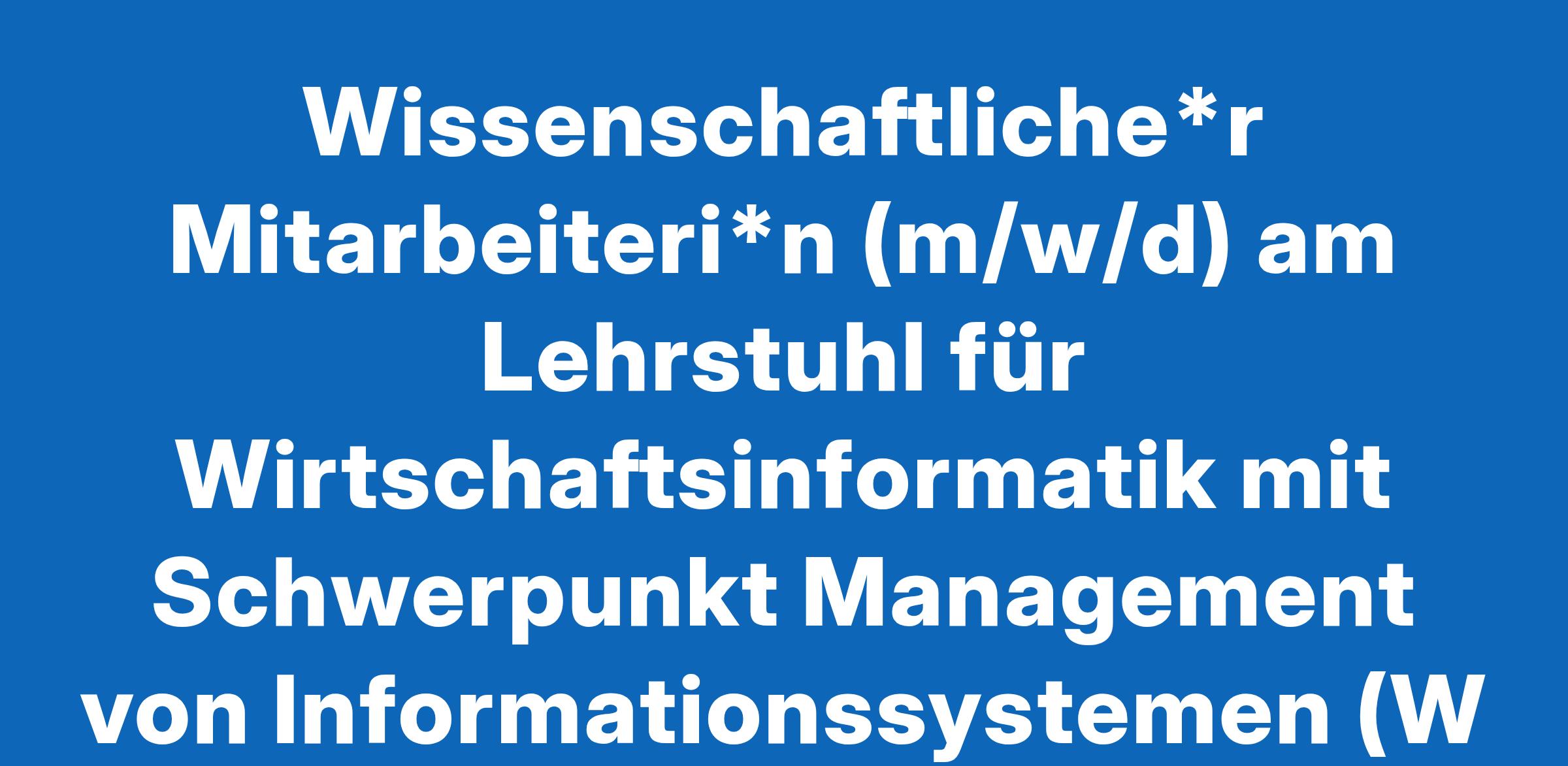 Wissenschaftliche*r Mitarbeiteri*n (m/w/d) am Lehrstuhl für Wirtschaftsinformatik mit Schwerpunkt Management von Informationssystemen (W 3)