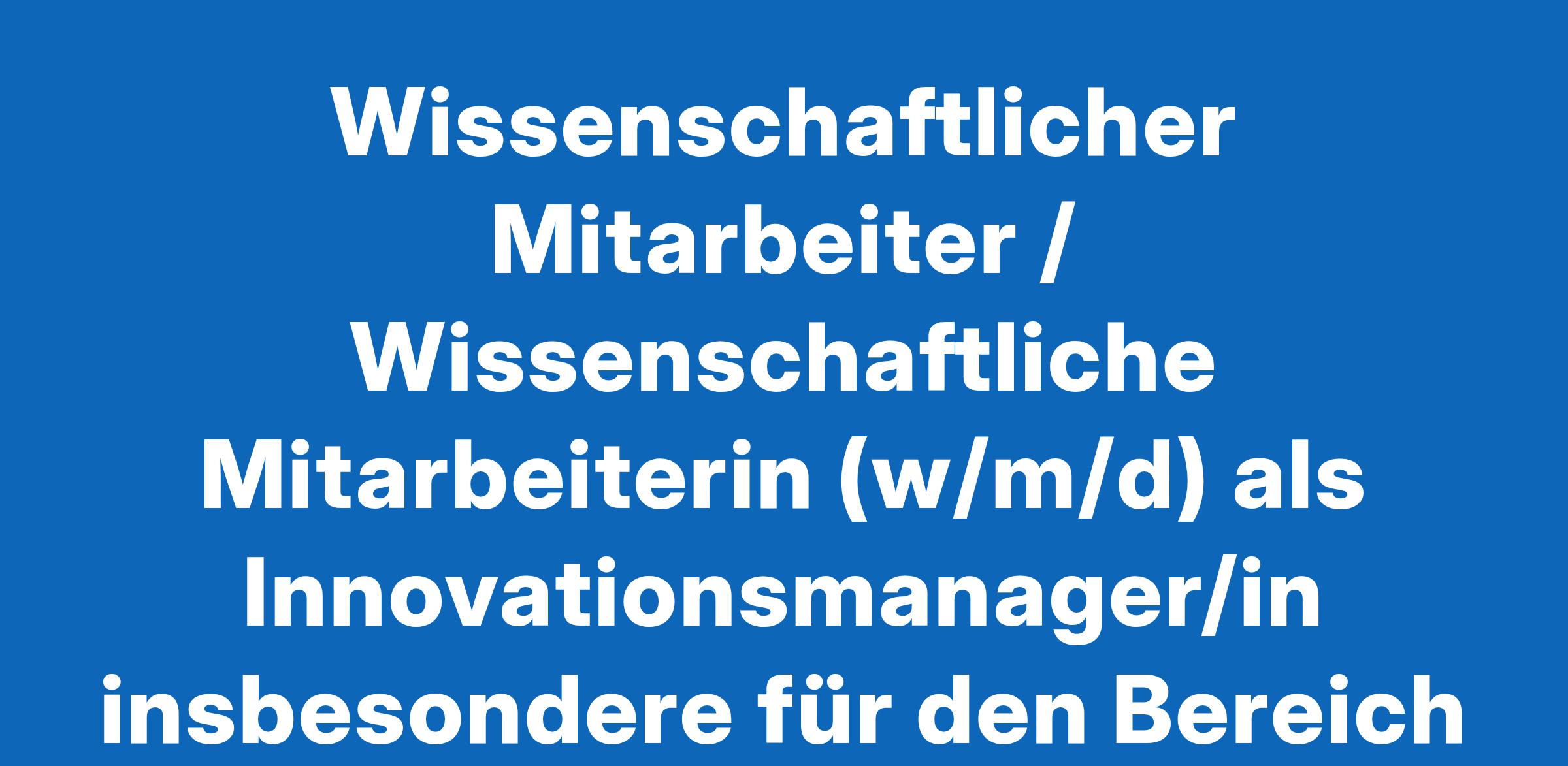 Wiss. Mitarbeiter / Wiss. Mitarbeiterin (w/m/d) als Innovationsmanager/in insbesondere für den Bereich Forschungssupport