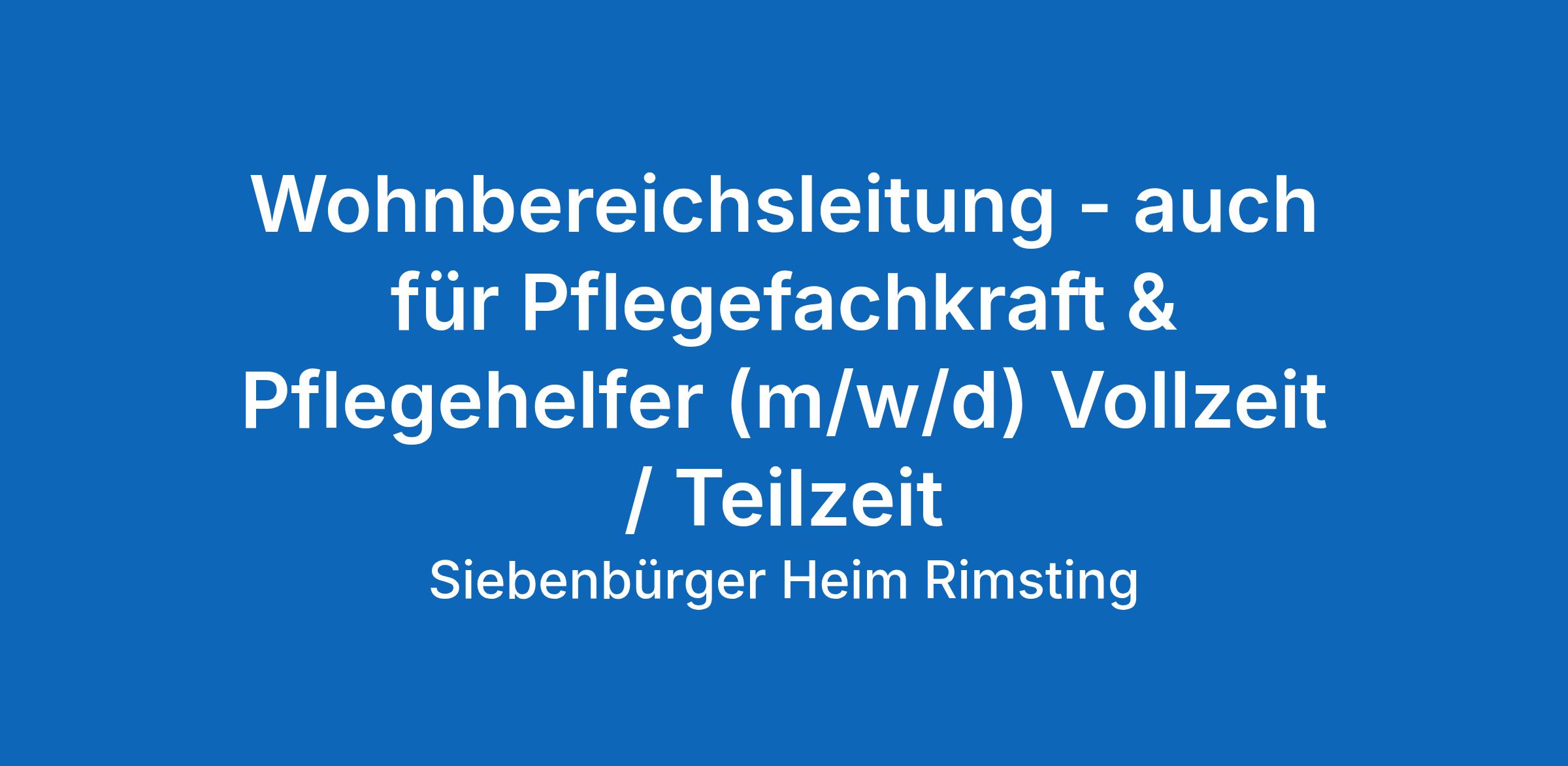 Bitte sende deine vollständigen Bewerbungsunterlagen unter Angabe der Referenznummer YF-24451 per E-Mail an siebenbuergerheim-rimsting@t-online.de oder per Post an Siebenbürgerheim Rimsting - Guggenbichl 3 - 83253 Rimsting.
