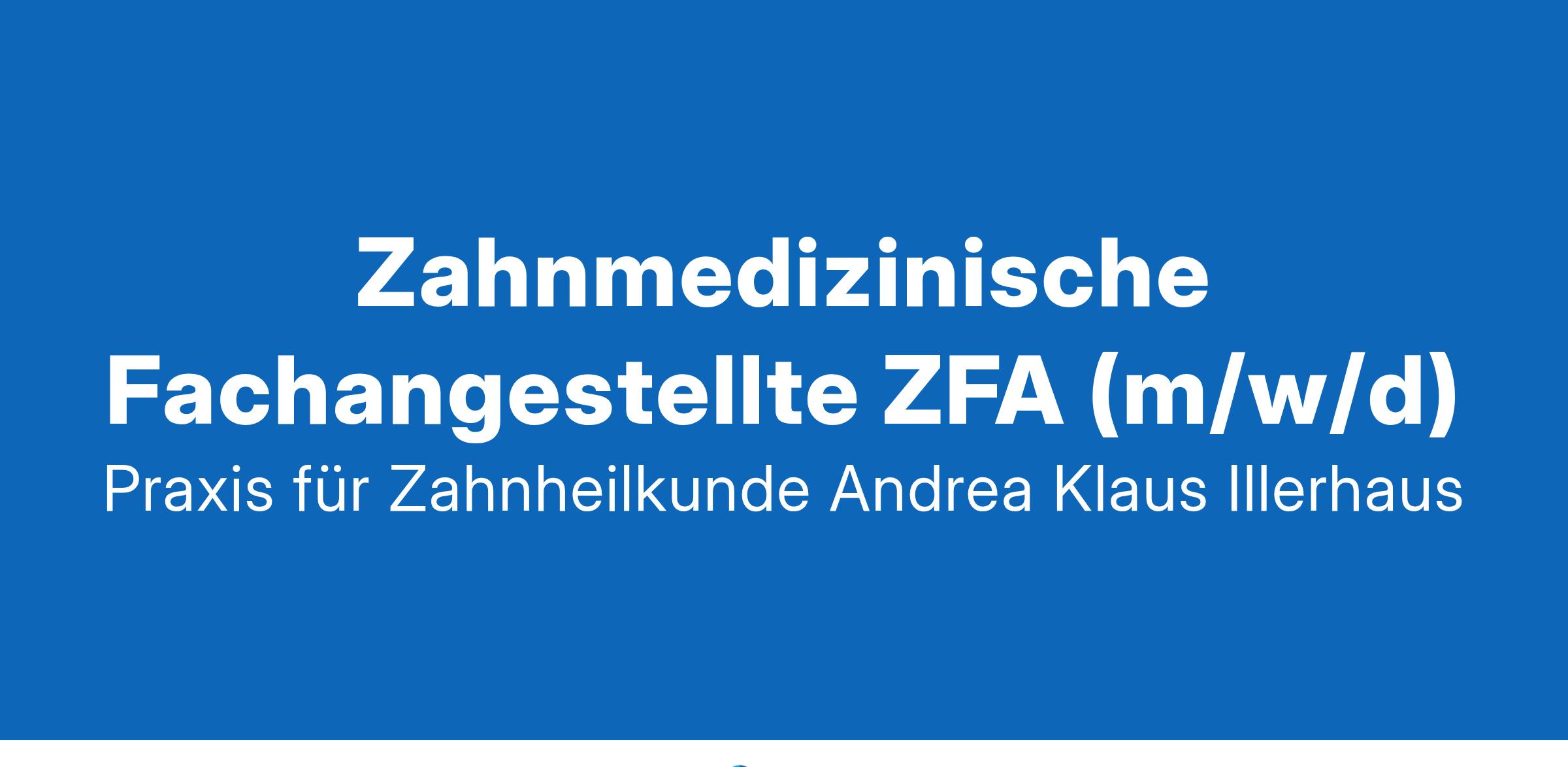 Zur Verstärkung unseres Teams suchen wir ab sofort eine/n Zahnmedizinische Fachangestellte ZFA (m/w/d) in Voll- oder Teilzeit Ihre Aufgaben: Assistenz am Behandlungsstuhl Gemeinsam mit dem Team sind Sie verantwortlich für die Instrumentenaufbereitung und die Umsetzung der Hygiene Anfertigen von Röntgenbildern Ihr Profil: Verantwortungsbewusstsein und Zuverlässigkeit Spaß an der Arbeit mit PatientInnen und KollegInnen Spaß an der Arbeit im Team und Lust darauf, eine Praxis gemeinsam zu gestalten Organisationstalent und eine strukturierte, zuverlässige Arbeitsweise Wir bieten Ihnen: Familiäres Arbeitsklima (kleine Praxis), Wertschätzendes Miteinander Fortbildungsmöglichkeiten Überdurchschnittliche Anzahl an Urlaubstagen Flexible Arbeitszeiten Kostenlose Parkplätze direkt am Haus Und ein stets lustiges Team Sie fühlen sich angesprochen? Wir freuen uns auf Ihre Bewerbung. Gerne per E-Mail an: info@praxis-illerhaus.de Praxis für Zahnheilkunde
