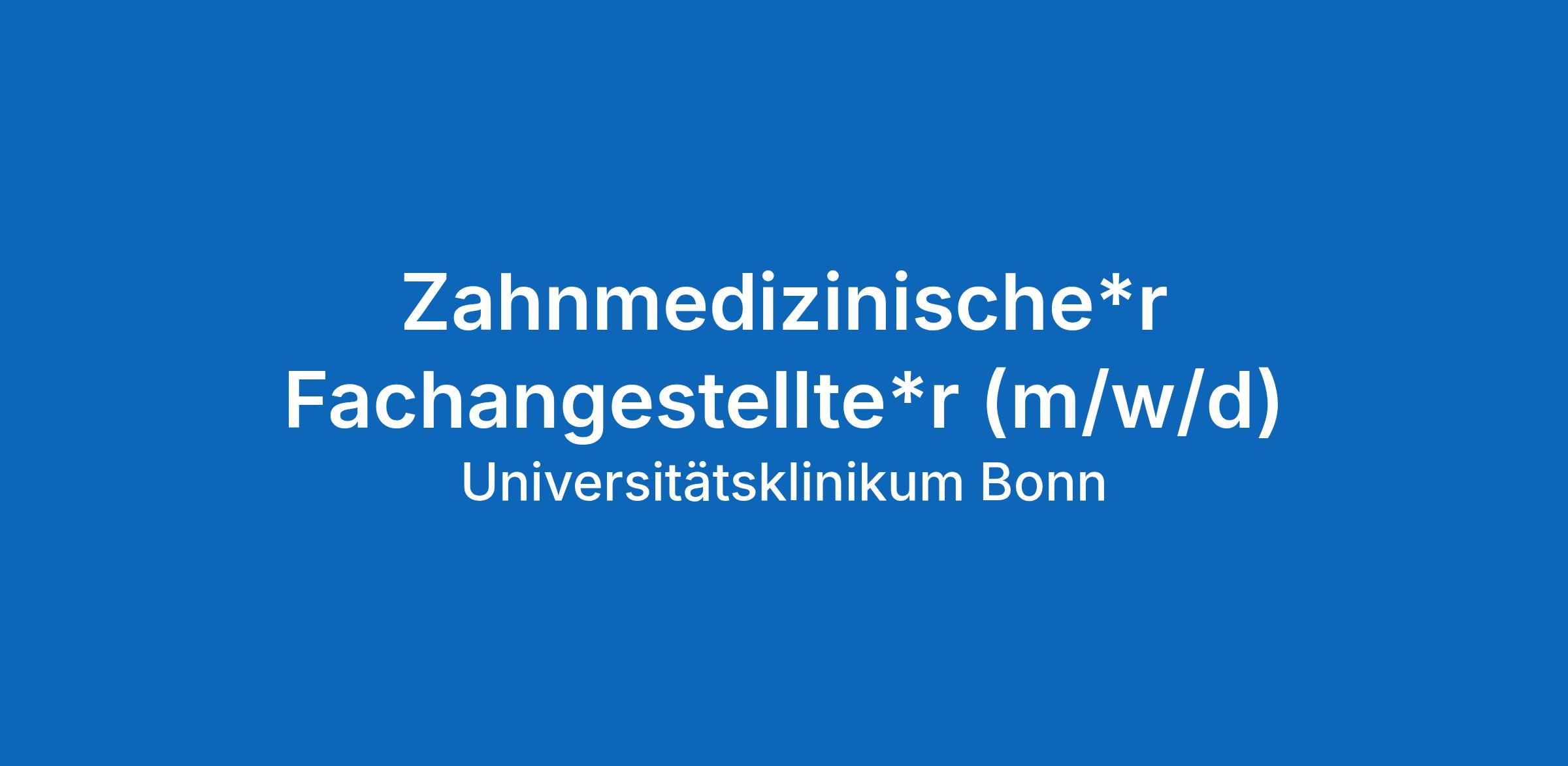 In der Poliklinik für Zahnerhaltung und Parodontologie des Universitätsklinikums Bonn ist zum nächstmöglichen Zeitpunkt folgende Stelle in Vollzeit (38,5 Std./Woche) zu besetzen: