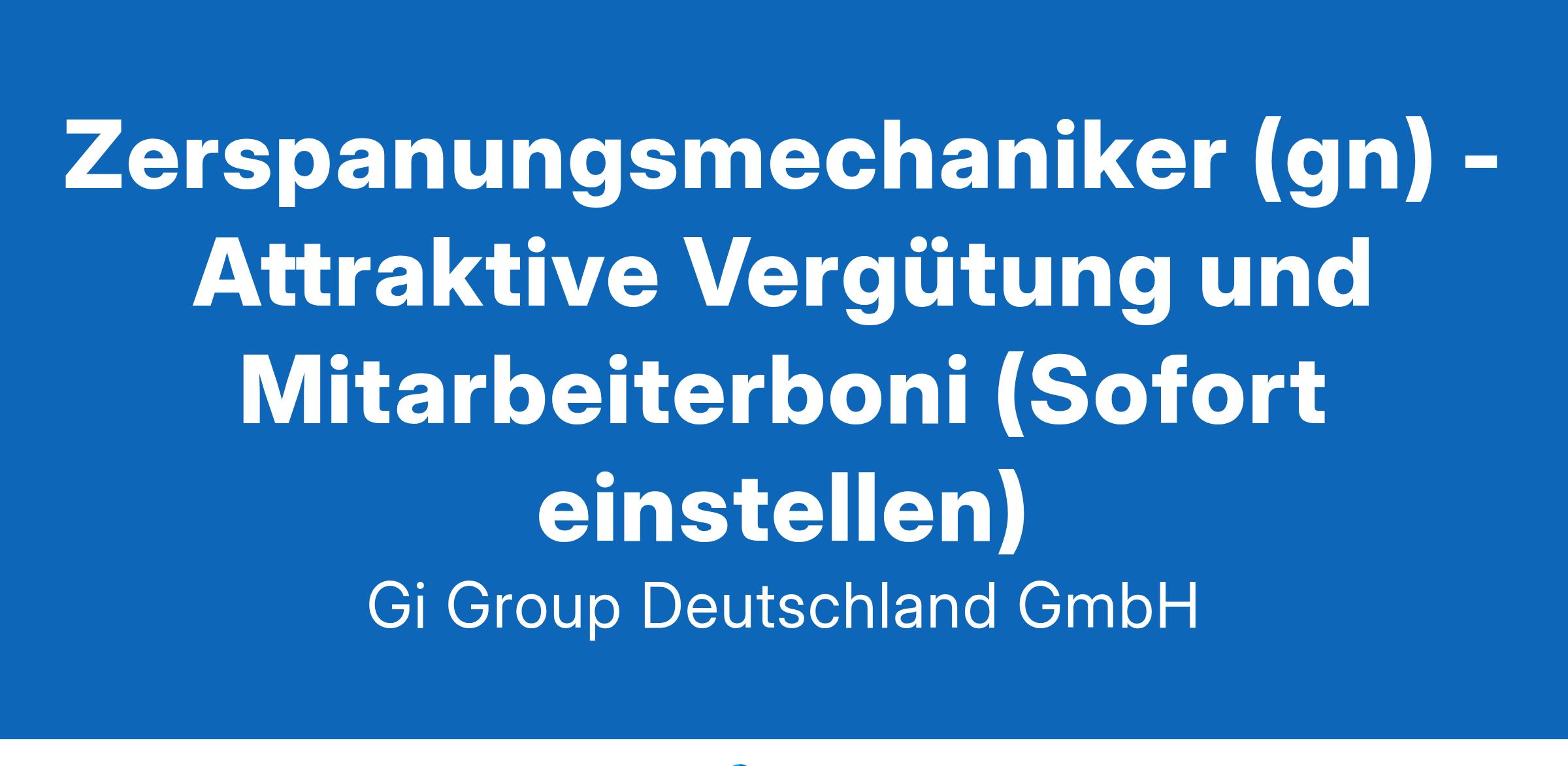Zerspanungsmechaniker (gn) - Attraktive Vergütung und Mitarbeiterboni (Sofort einstellen)
