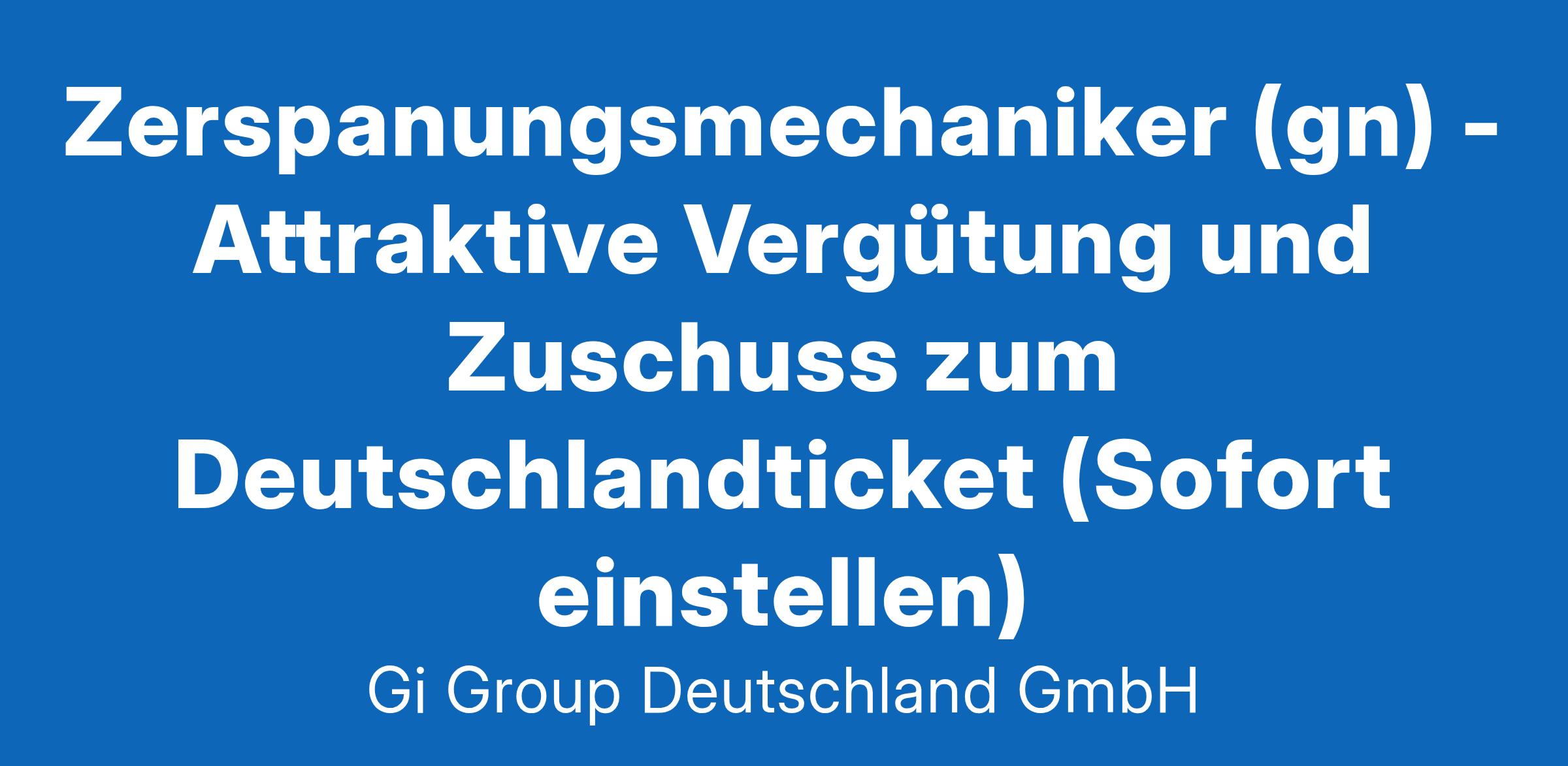Zerspanungsmechaniker (gn) - Attraktive Vergütung und Zuschuss zum Deutschlandticket (Sofort einstellen)