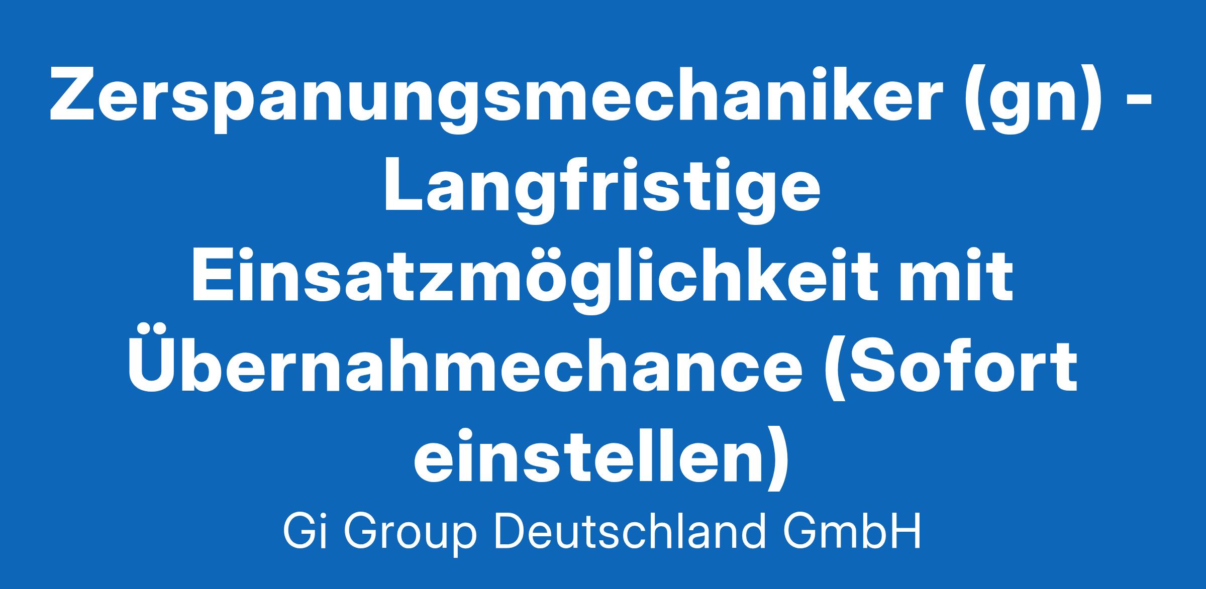 Zerspanungsmechaniker (gn) - Langfristige Einsatzmöglichkeit mit Übernahmechance (Sofort einstellen)