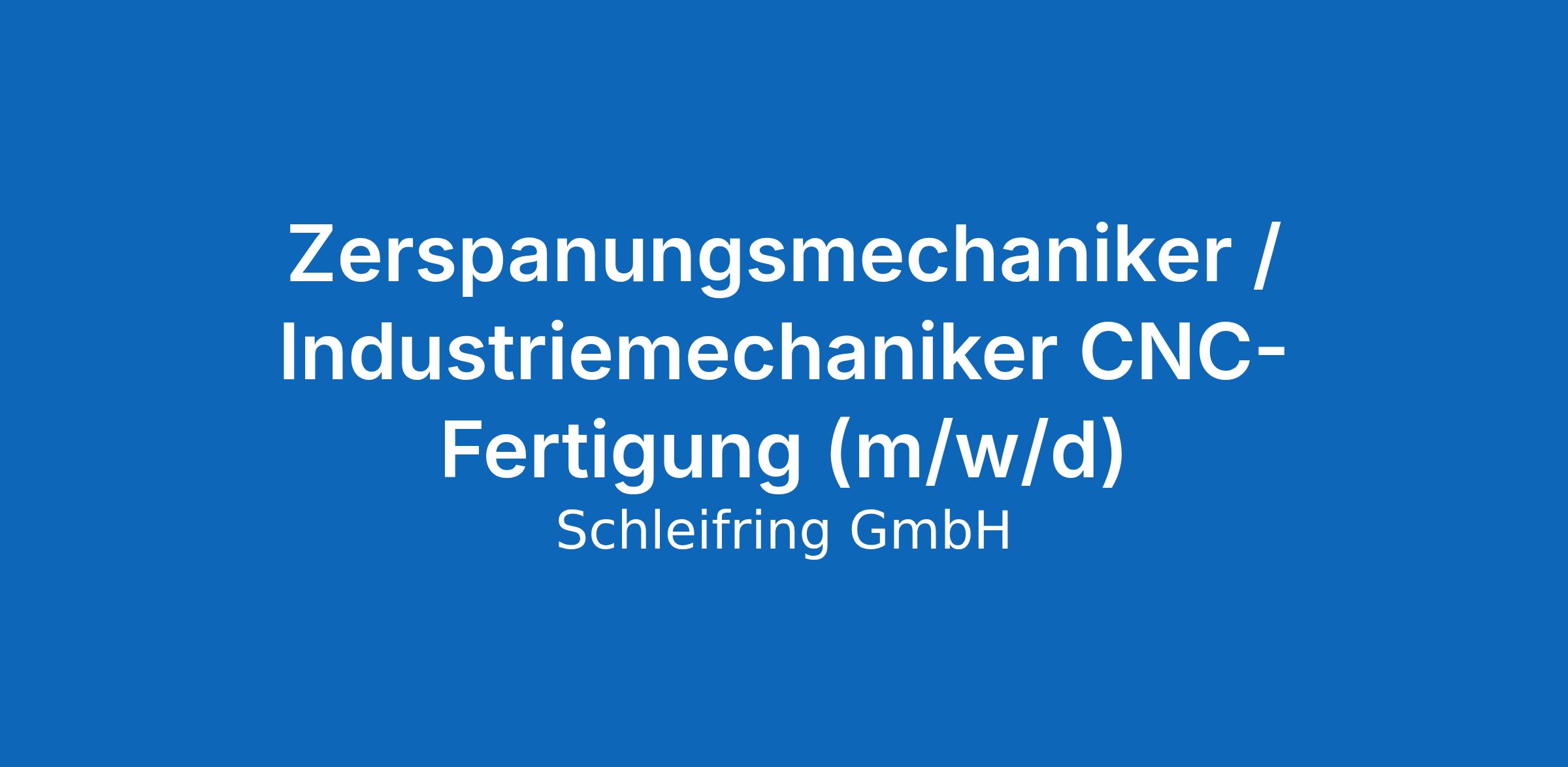 Zerspanungsmechaniker / Industriemechaniker CNC-Fertigung (m/w/d)