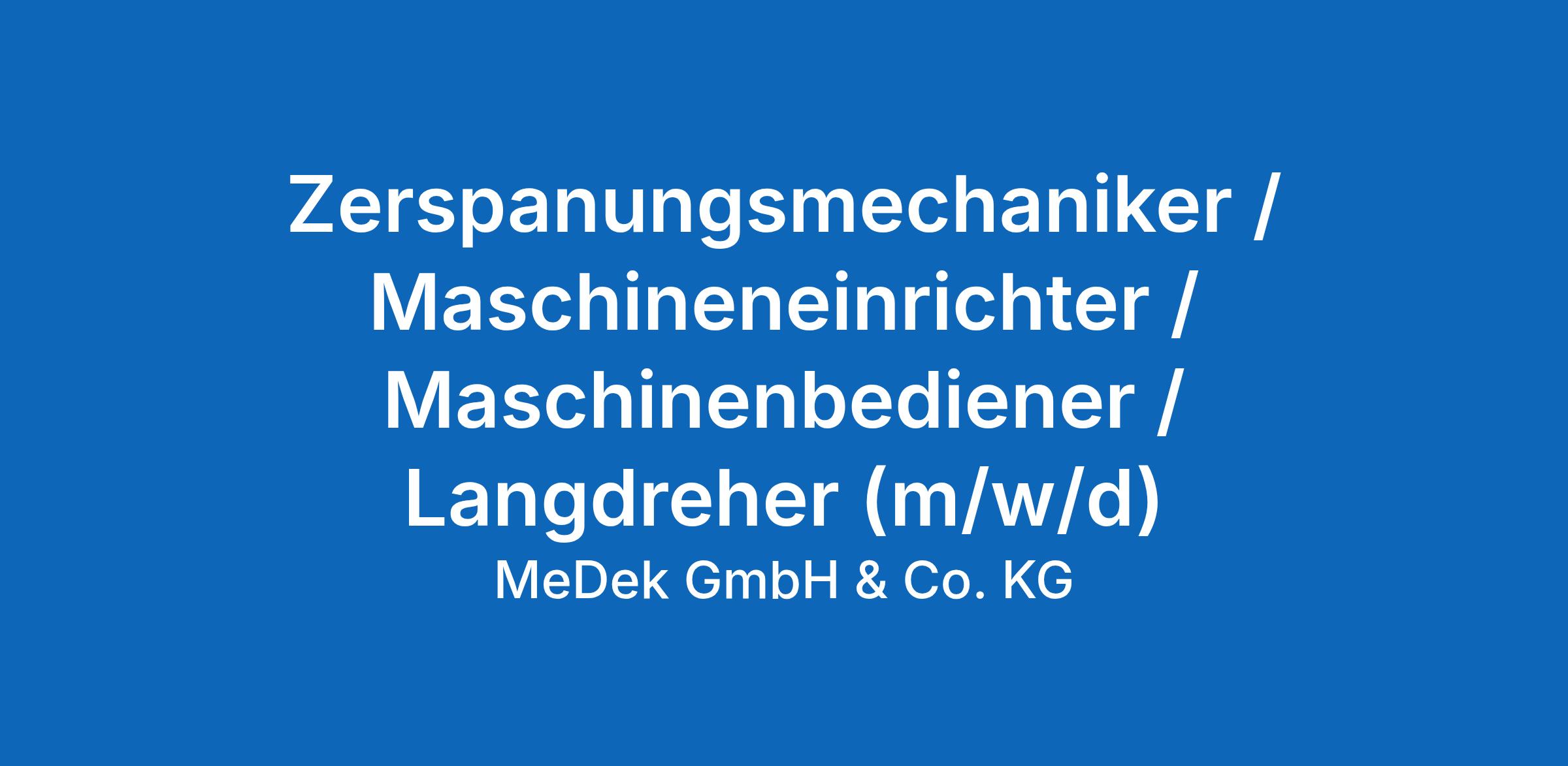 Zerspanungsmechaniker / Maschineneinrichter / Maschinenbediener / Langdreher (m/w/d)