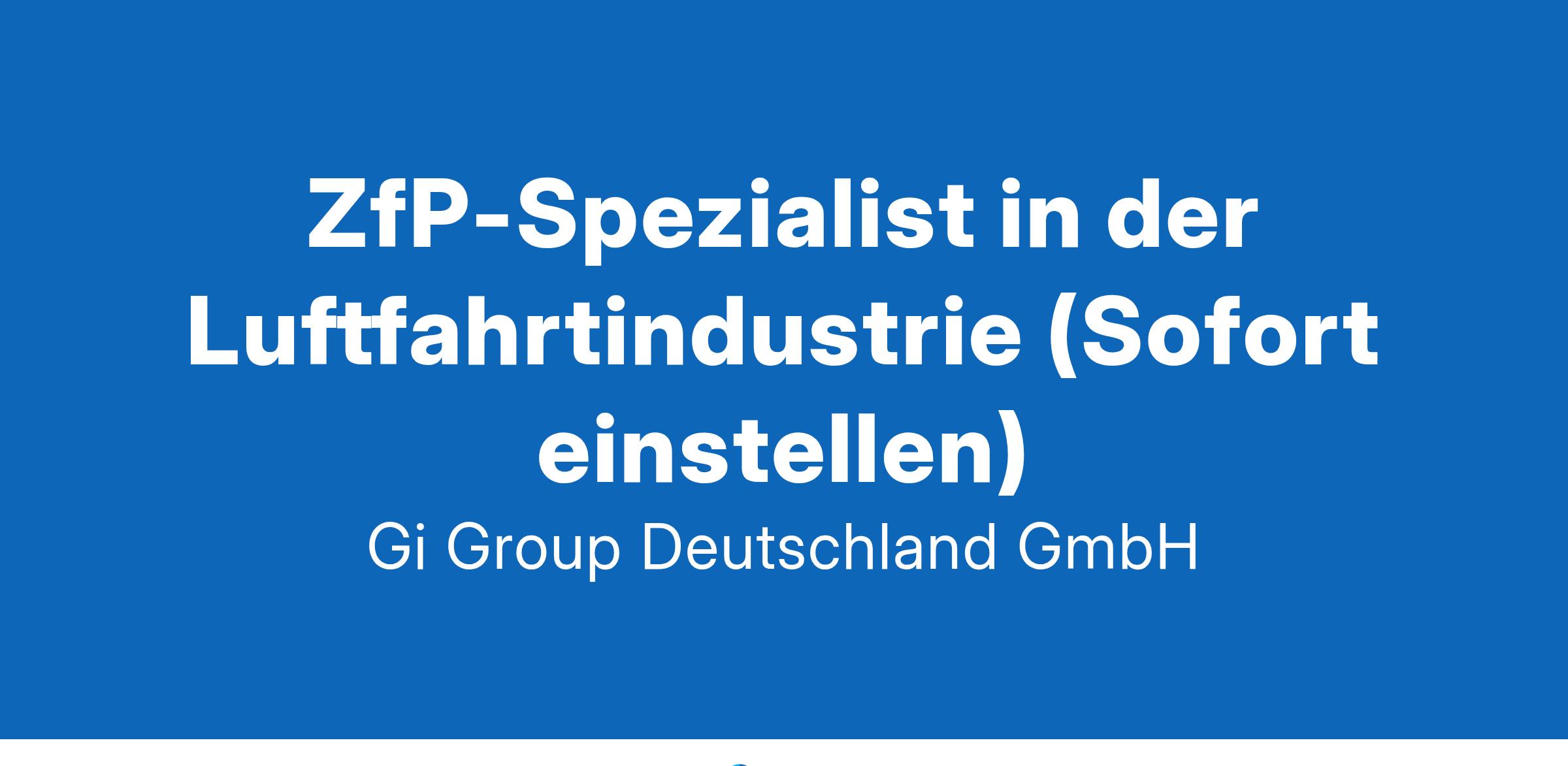 ZfP-Spezialist in der Luftfahrtindustrie (Sofort einstellen)